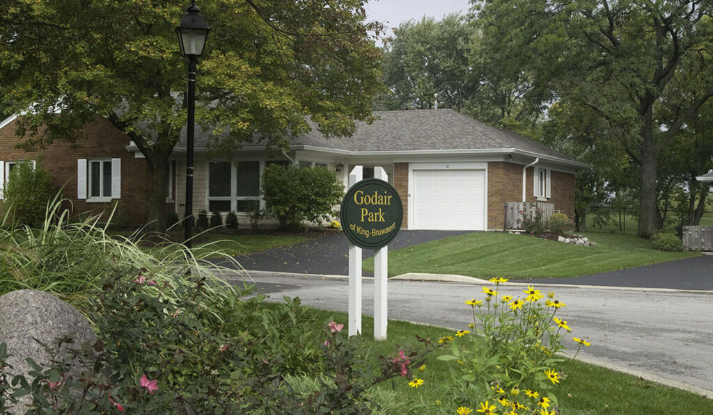 Our single-story Godair Park rental duplex homes offer a tranquil setting for adults age 60 and above who seek a rewarding yet peaceful lifestyle. This friendly neighborhood of 31 homes has a unique location next to the beautiful Ruth Lake Country Club in Hinsdale. Some of the homes border the golf course, while others surround a scenic, tree-lined pond that offers year-round enjoyment. A convenient pedestrian path borders the pond, attracting residents and neighbors to gather for daily or weekly walks or casual conversations.